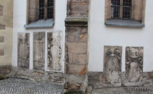 Kultur- und stadtgeschichtlich hervorzuheben sind auch die kunstvoll herausgearbeiteten Marmor-Epitaphe an der Außenwand der Kirche wie auch